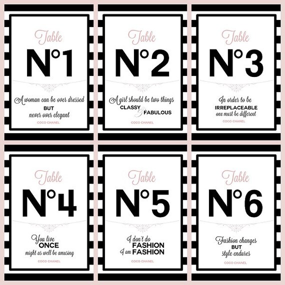 Table Numbers 1 6 With Chanel Quotes Digital Printable Etsy
