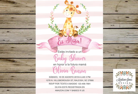 Es Nina Jirafa Baby Shower Invitacion Girl Giraffe Baby Etsy
