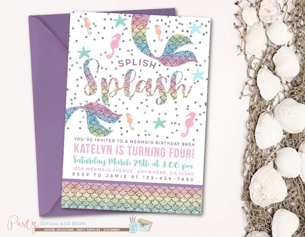 Mermaid Girl Baby Shower Invitation Sea Ocean Beach Pool Party