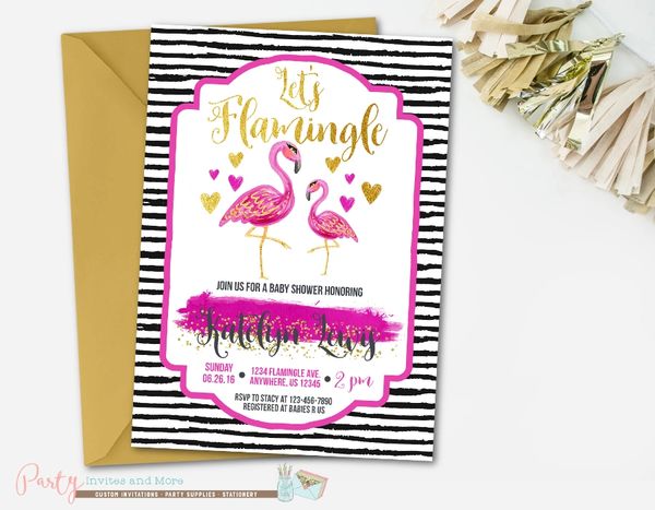 Let S Flamingle Baby Shower Flamingo Invitation Ladyprints
