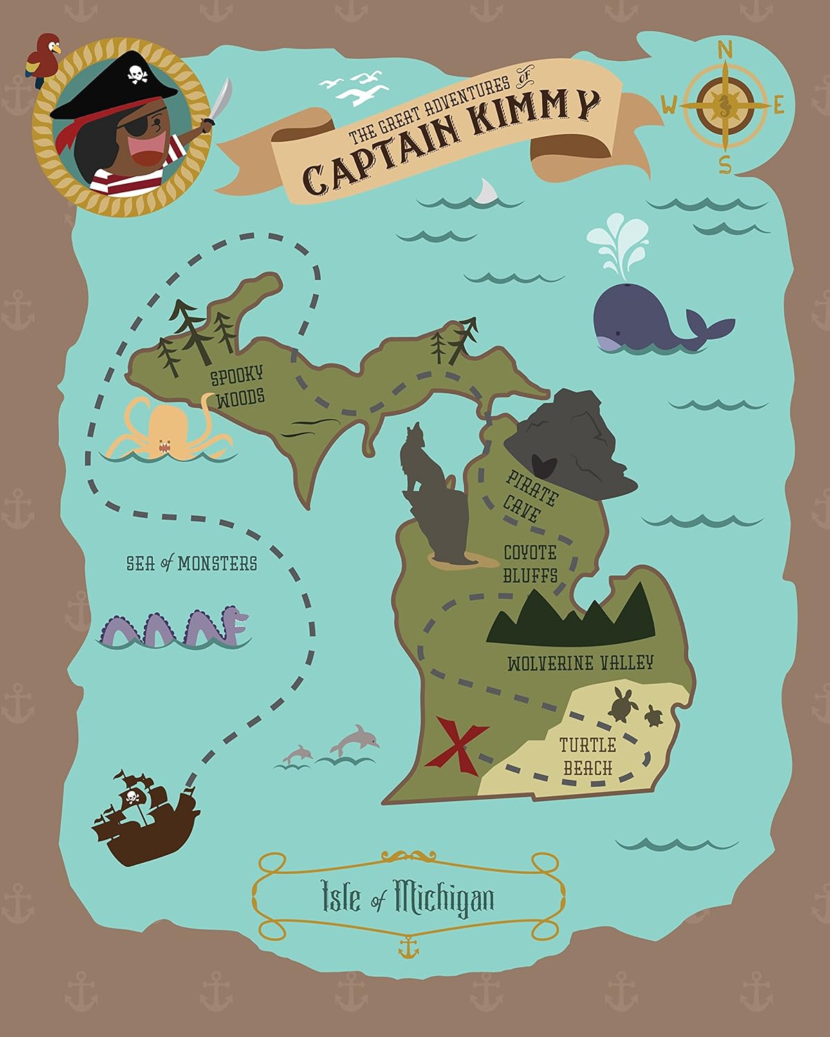 Amazon Com Custom Michigan State Pirate Treasure Map Print